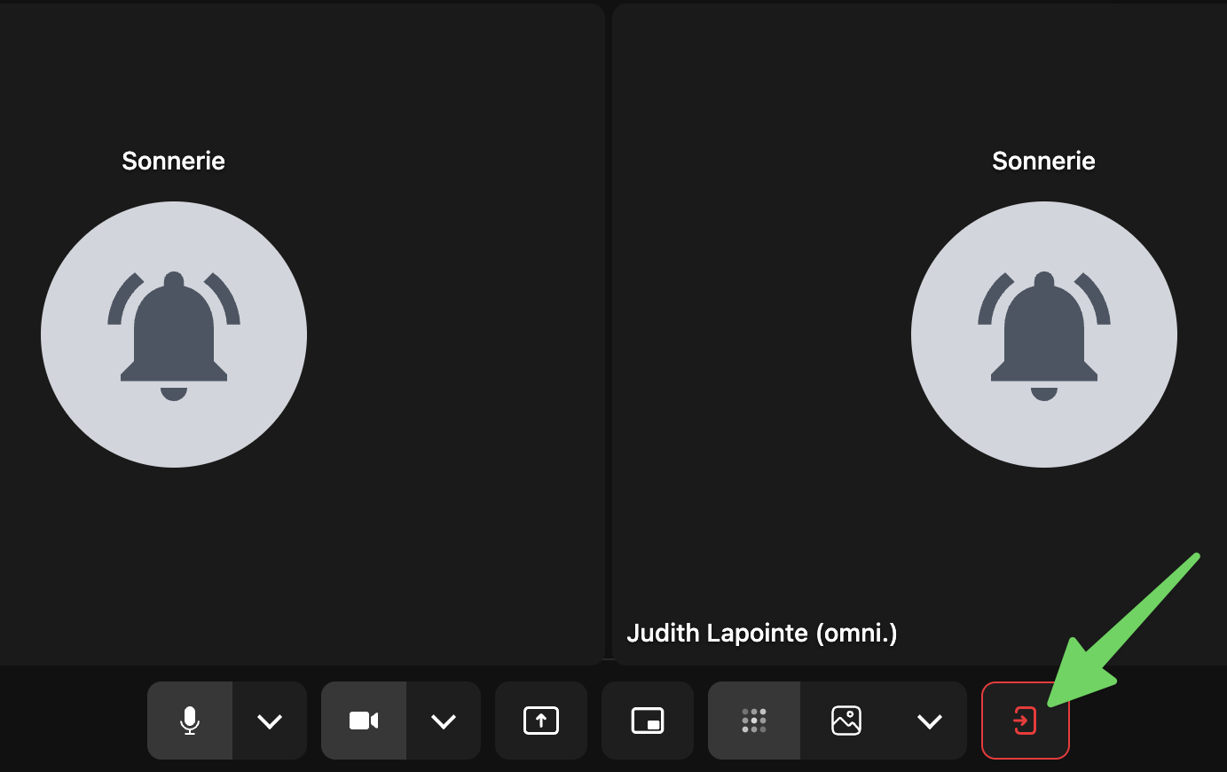 **Vous voilà dans l'appel conférence! Cliquez sur le bouton rouge pour terminer l'appel.**